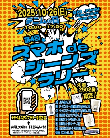 10月26日(土)のデニムの日に合わせて、児島ジーンズストリートでは第2回「スマホdeジーンズラリー」を開催することが決定しました!