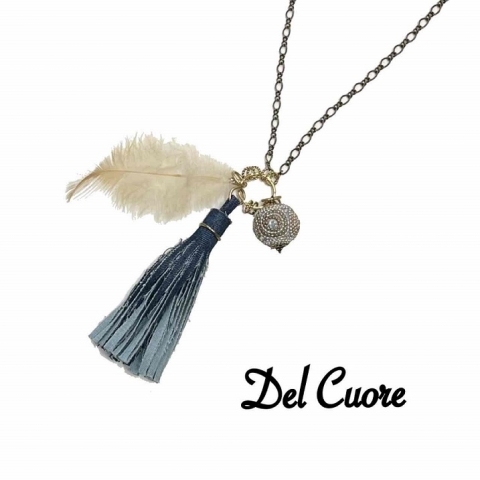 Del Cuore 『デニムタッセルの羽根付きキラキラネックレス』
