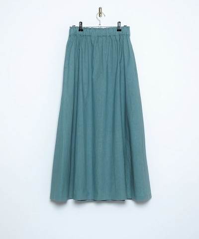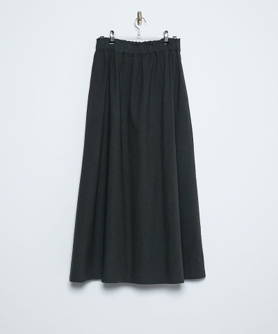 ダウンプルーフ素材を使用したウエスト周りにギャザーの入ったロングスカート。