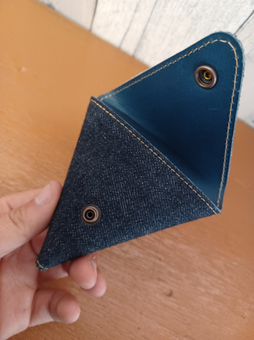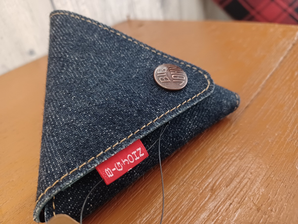 商品紹介!! 今回はデニム×レザーのシリーズより、三角コインケースです。
