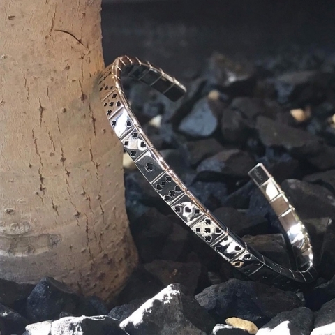 バングルの前面全てにトランプダイスが連なった、どの角度から見ても隙の無いデザイン。