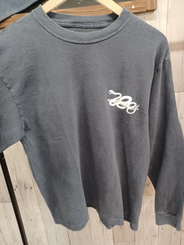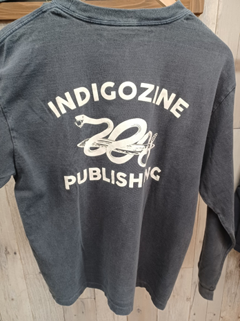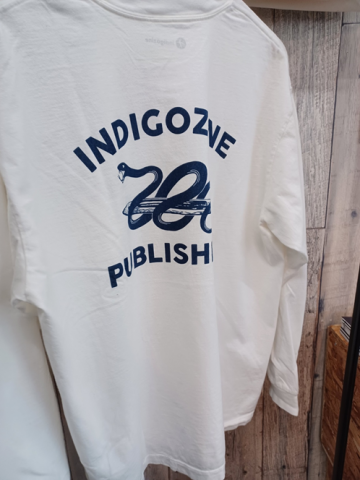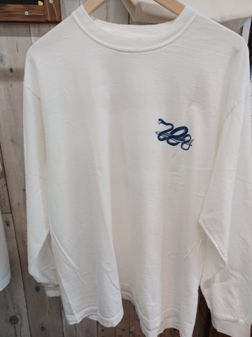 白ティーのプリントはインディゴ染めしていますので色落ちが楽しめるかと思います!