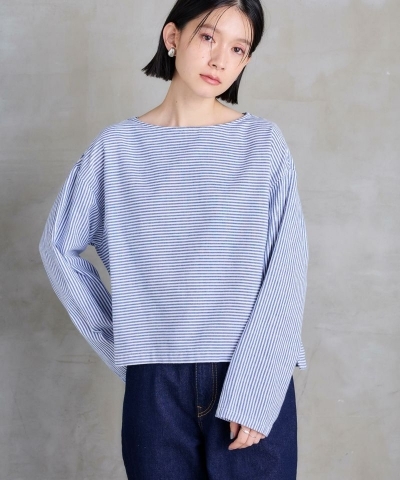 着丈が少し短めのシルエットですっきりと着こなせるスモックシャツ。