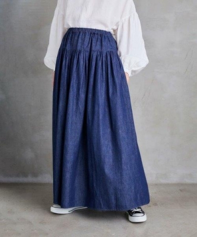 ギャザーをたっぷり入れたロングスカート。