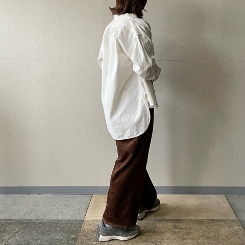 様々なシーンで活躍してくれるバンドカラーシャツです。