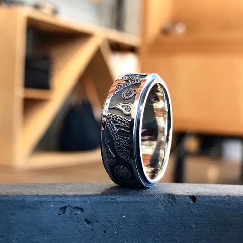 FLUIオリジナルデザインのペイズリー柄を、黒を基調に大胆に配置したリング。