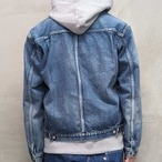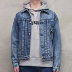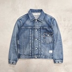 1stタイプのGジャンをモチーフにしたデニムジャケットだが、シンチバックをなくしたり、本来特大サイズのみにある背中のTバックディテールを全てのサイズにおいてデザインとして採用するなど、各ディテールにこだわりを持たせている。