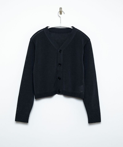 ショート丈でボックスシルエットのVネックカーディガン。
