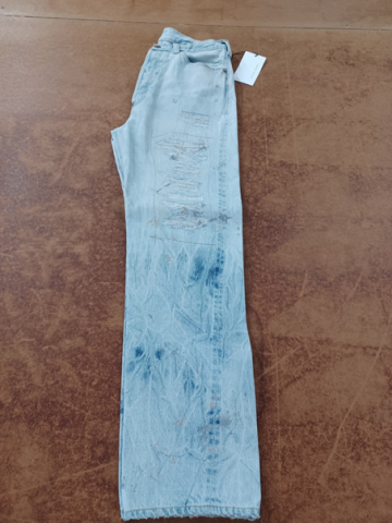 人気のジーンズ(BUCKAROO)をベースに作られており、普通に穿いても不可能な色に加工されております。