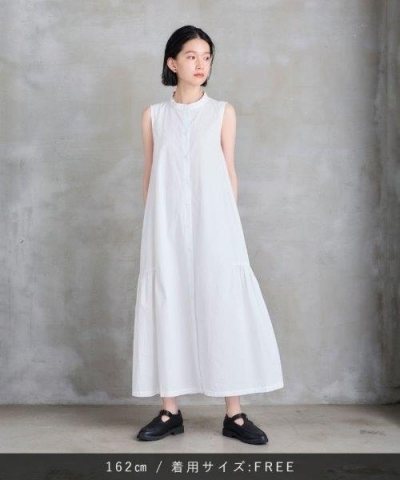 サイドにギャザーのアクセントを入れ、ふんわりとした広がりを持たせつつもタテのラインが強調されたデザイン。