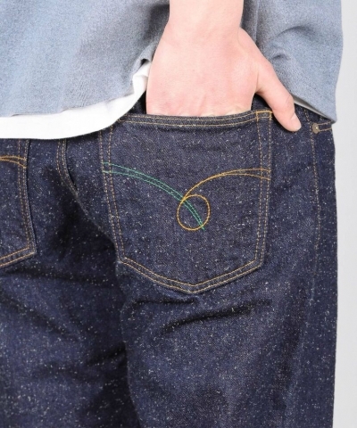このネップは通常の糸よりも不規則な質感を持ち、普通のデニムにはない個性的な雰囲気を醸し出します。