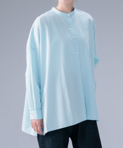 60番の糸を使った、ほどよいハリのあるタイプライター素材ですが、上質で柔らかい着心地になるように、しっとりとしたなめらかさと細かいしわ感を素材の加工で表現しています。