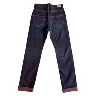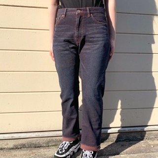 赤いデニムですが、深い色合いですので派手になりすぎずカジュアルに着こなしていただけます。