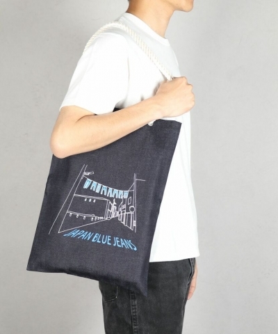 前面には、児島ジーンズストリートの街並みのイラストをプリント!