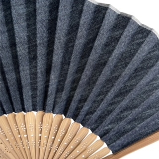 岡山で加工されたデニム生地を使用し、京都の職人の手によって仕上げられたデニム生地の扇子。
