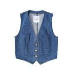肌馴染みの良いヴィンテージライクの素材のクロップド丈ベストがカジュアルながらもこなれ感を演出。