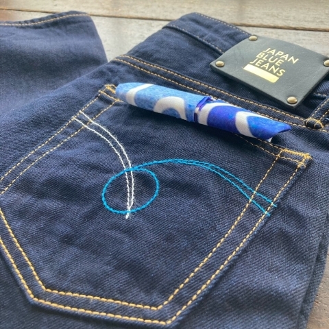 白は瀬戸大橋を、青は瀬戸内海をイメージしたカラーで、とても人気のジーンズです!