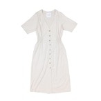 シャーリングゴムを使用することによりストレスフリーな着心地を実現しました。首元は深めのVネックにすることでスッキリとした印象で着用していただけます。