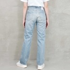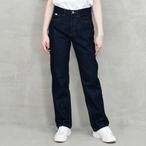 デニムジャケットと同じ13オンスの生地を使用し、シンプルに長く愛用していただけるべーシックなストレートパンツ。ヒップと太もも周りのシルエットにこだわり何度も修正を重ね、一つ一つ手作業でヴィンテージ加工を施しました。T-ASSACのスタンダードとなる自信作です。