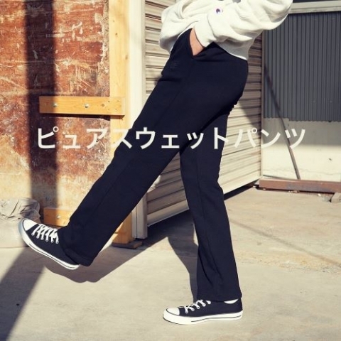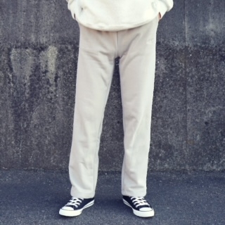 現在では希少価値の高いアズマ編み機を使用したヘビーウェイトの素材を使用したスウェットパンツ