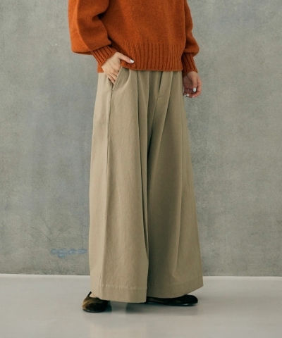 ゆったりとしたシルエットながらハイウエストのため、短めのトップスを合わせたりタックインをしてウエスト周りをすっきりさせれば脚長効果も叶います。