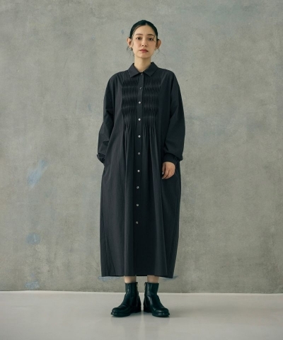 ピンタックで波を表現しているデザインが特徴のロングワンピース。