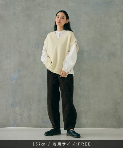 カジュアルな雰囲気に仕上げられていますが、細い畝のため綺麗な雰囲気で着られます。