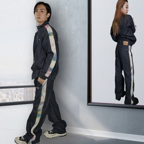 デニムトラックジャケットとセットアップになるパンツが入荷致しました♪