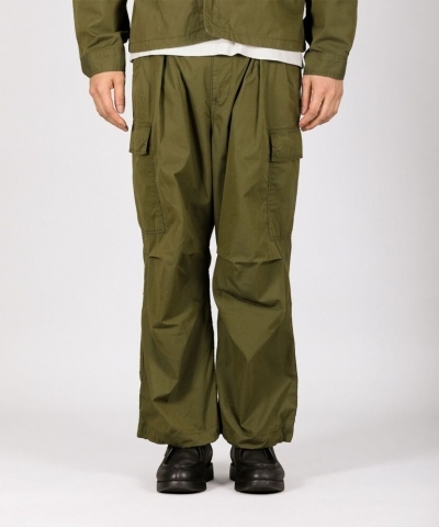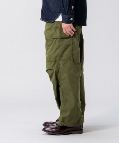 戦闘服の上から着用するために作られたワイドなシルエットのオーバーパンツから着想を得た