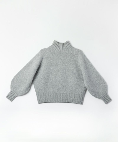 首をしっかり包み込むショート丈のハイネックニット。