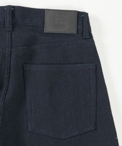 通常のデニム生地と同じロープ染色のインディゴカラーで染められた糸を使用しているため
