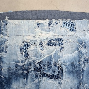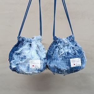 “DENTO” SASHIKO DRAWSTRING BAG BORO ver