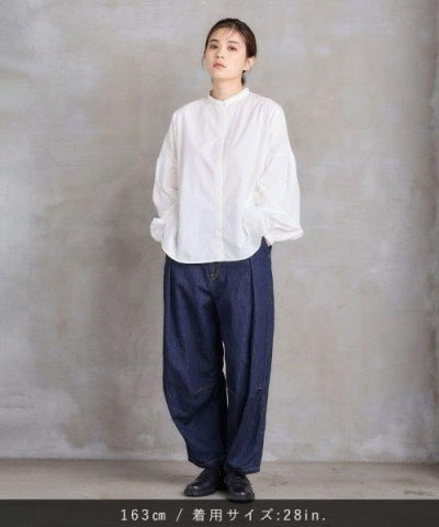 ヒップ回りを大きくとり、裾に向かってテーパードがかかったボリュームのあるワイドシルエット。
