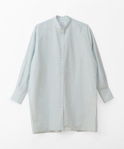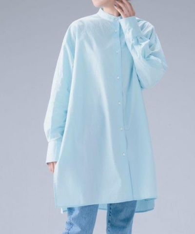 60番の糸を使った、ほどよいハリのあるタイプライター素材ですが、上質で柔らかい着心地になるように、しっとりとしたなめらかさと細かいしわ感を素材の加工で表現しています。