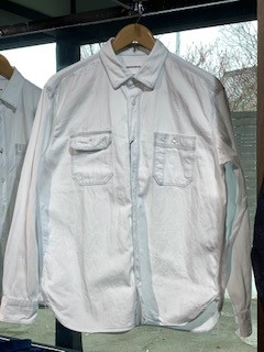 濃色のデニムをベースにブリーチ加工を施して、うっすらと淡いブルーを残した珍しいカラーのデニムシャツです。