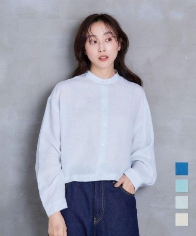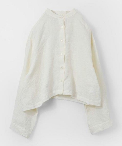 首元がすっきり見えるバンドカラーのシャツ。