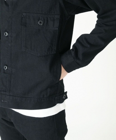 中肉厚でしっかりした着心地のブラックデニム生地で