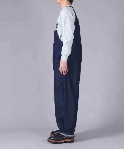 フロントファスナーとゆったりしたデザインが特徴的なオーバーオールで、