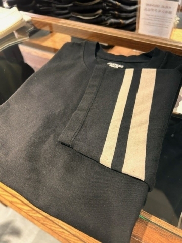 左袖にはMOMOTARO JEANSの原点を継承した二本線を抜染で表現。