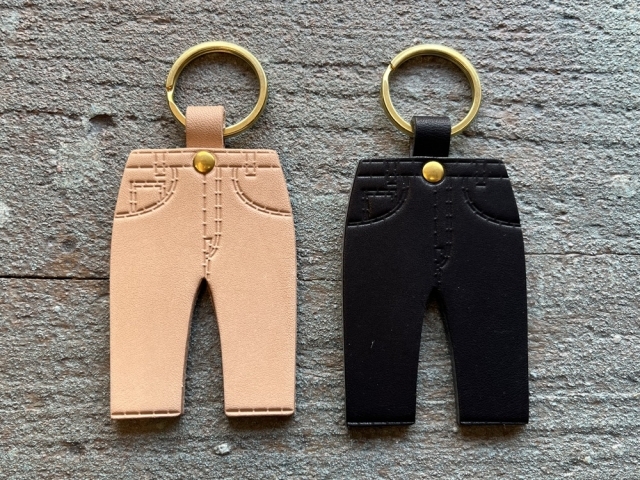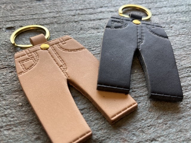 本日は、ジーンズ好きにはたまらない、ジーンズのシルエットをかたどった遊び心のあるレザーキーホルダーをご紹介いたします。