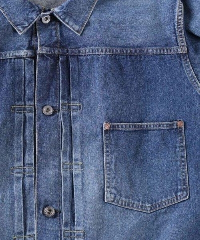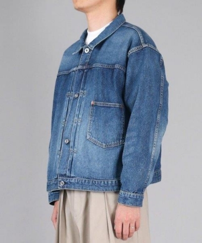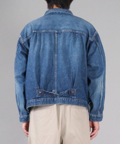 短めの着丈×ボックスシルエットに、前身頃のアクションプリーツやボックスステッチなど、1st型ならではのディテールを忠実に再現。