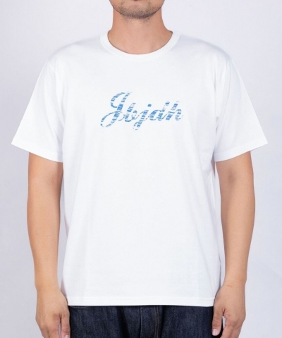サーフテイストある掠れ文字風にプリントを施したカレッジTシャツ。