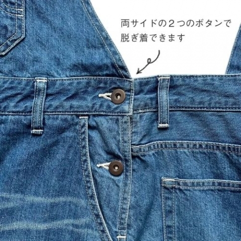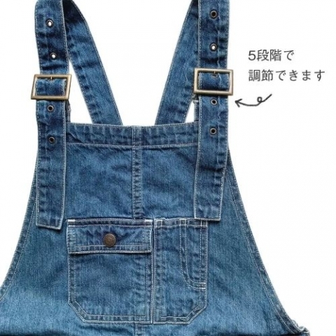 薄めで軽いデニムを使用していますので、サロペットタイプでも肩に負担なく着用していただけます。