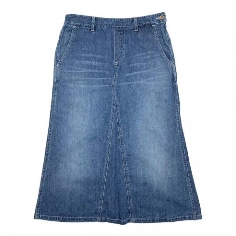 淡いブルーと女性らしい柔らかい加工感が特徴のユーズド加工のロング丈タイプです。