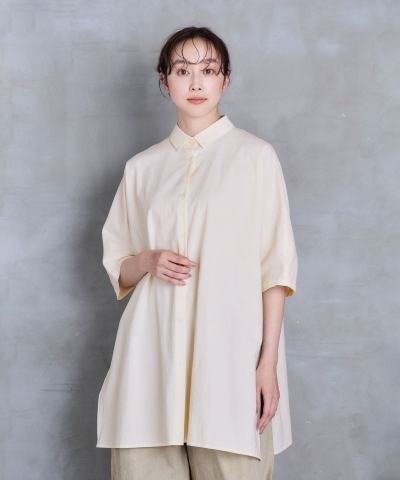 縦のラインが美しいミドルレングスの5分袖シャツ。