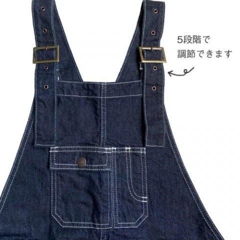 薄めで軽いデニムを使用していますので、サロペットタイプでも肩に負担なく着用していただけます。