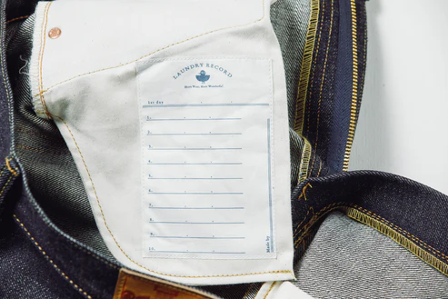 omotodenimのジーンズを手に取ったとき、内側のポケット(袋布)に縫い付けられた一枚のタグに気づく方も多いかもしれません。それが「ランドリーレコード」です。