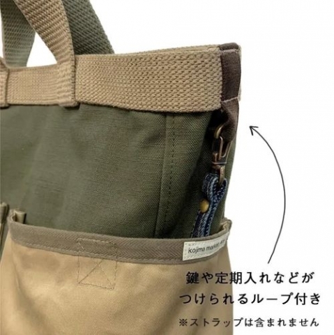 カーキ部分にはキャンバス生地、ベージュ部分にはバックサテン生地を使用。