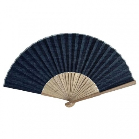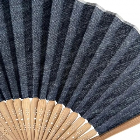 岡山で加工されたデニム生地を使用し、京都の職人の手によって仕上げられたデニム生地の扇子。
