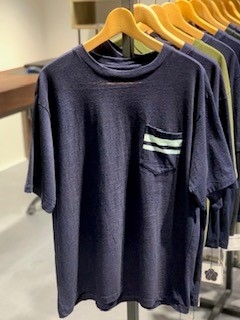 本日はインディゴ染めTシャツのご紹介です。ジンバブエコットンの20番ムラ糸を使用したオリジナルの6.6オンス天竺生地で、限られた工場でしか編むことができない希少な生地は、しなやかさと程よいコシを兼ね備えています。